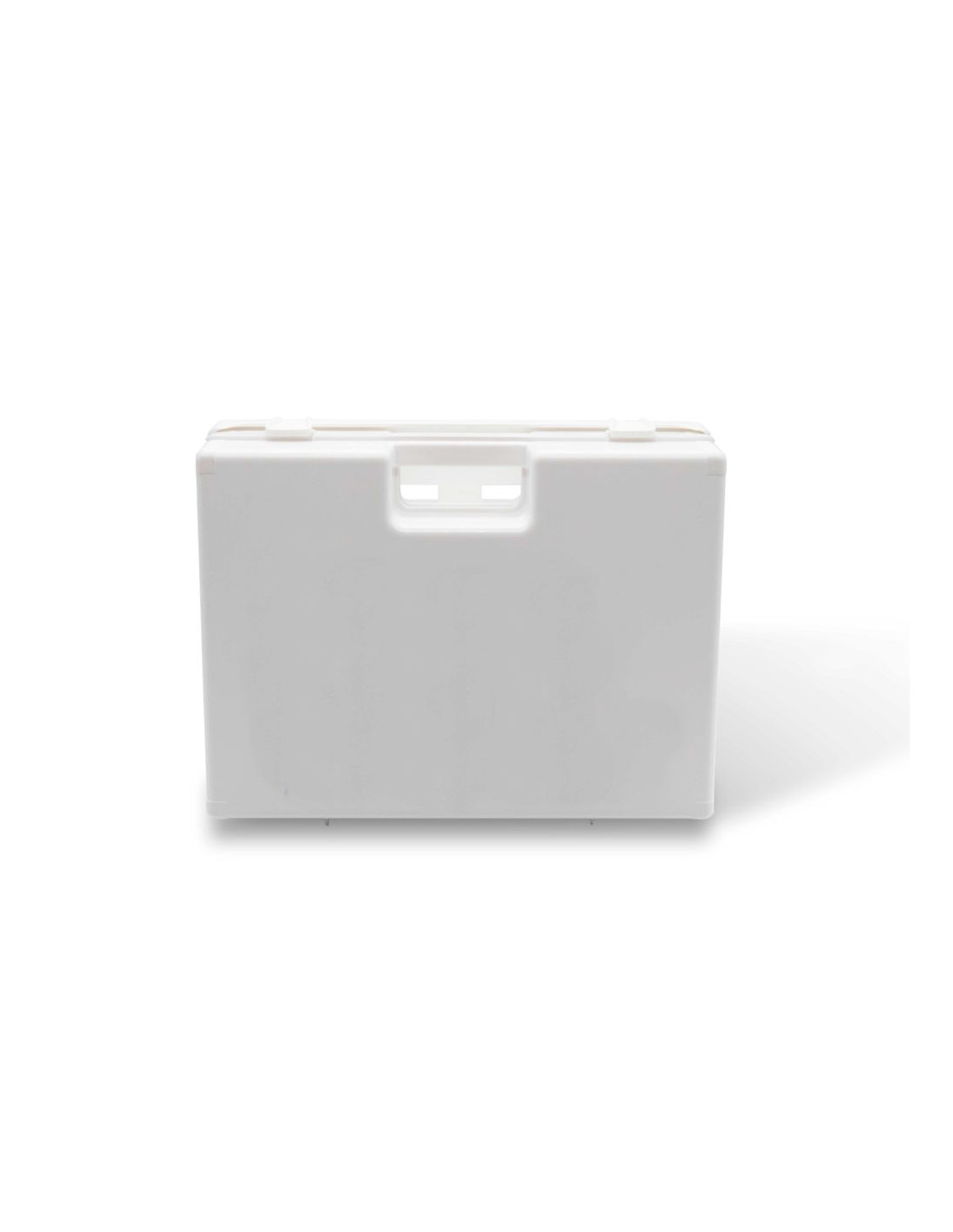 Contenitore realizzato in ABS composto da due parti uguali: ciascuna completa di vetri e separatori per un migliore alloggiamento dei prodotti.