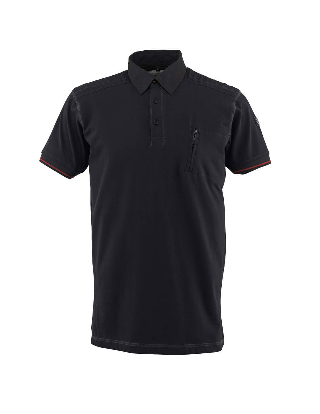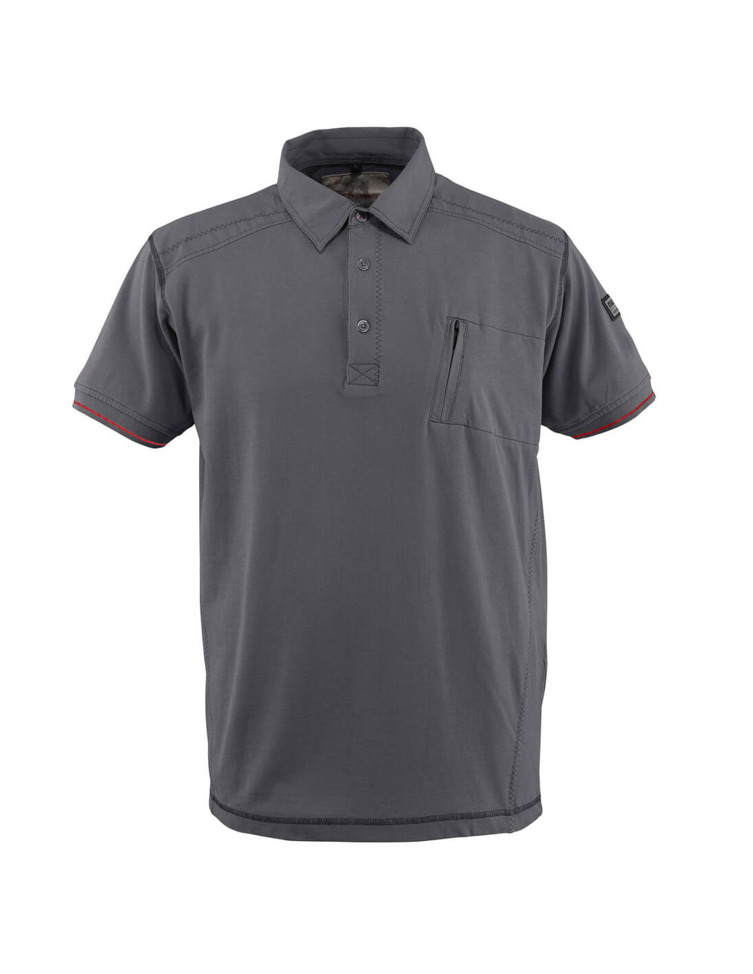 Collo in tela. Chiusura con bottoni. Inserti in tela su parte del prodotto. Tasca porta-telefono sul petto con cerniera. Maniche a costine. Cuciture di contrasto rossi su parte del capo. I bordi delle maniche a costine danno un look alla moda Materiali: 100% cotone 270 g/mq Restringimento max. 5%.