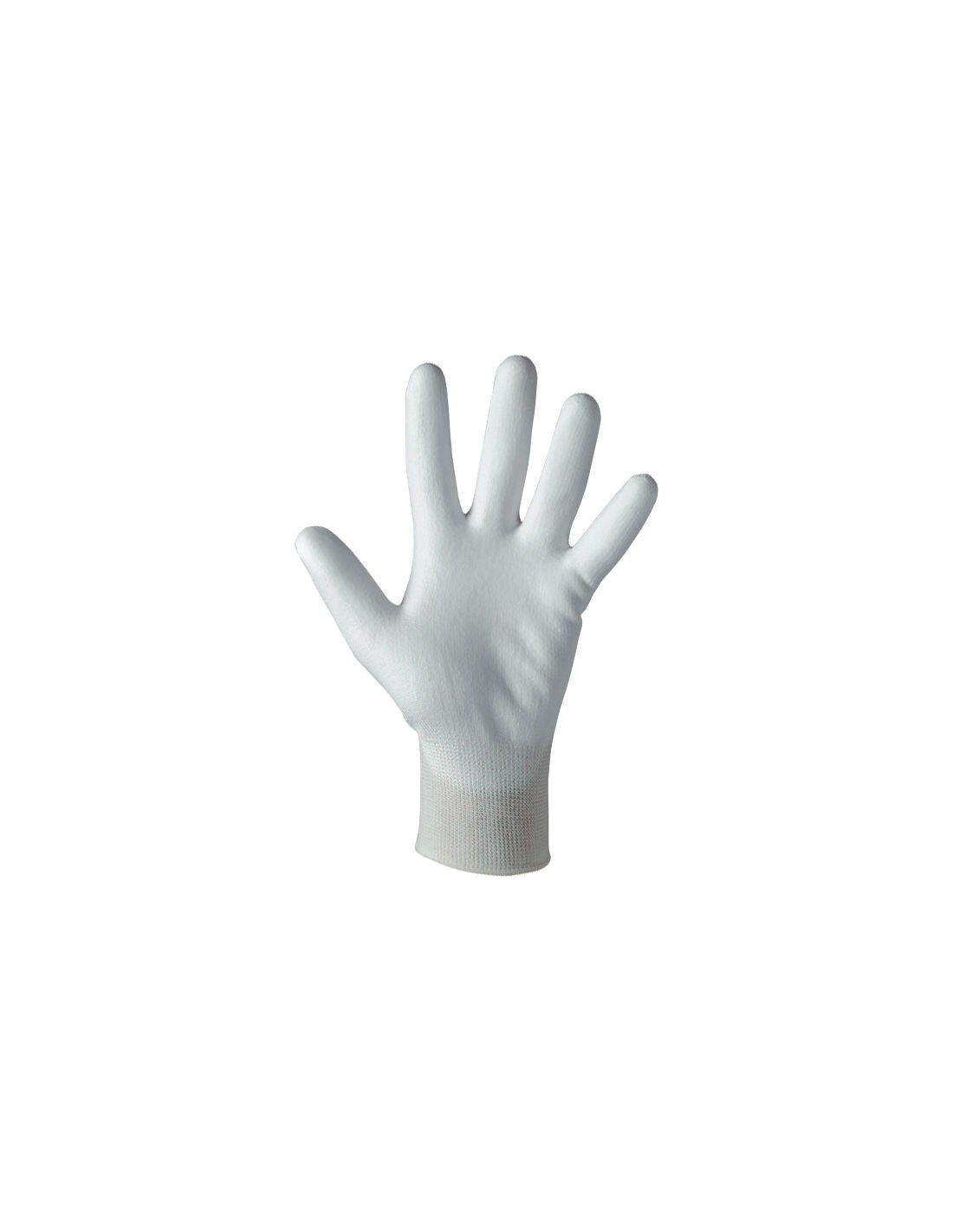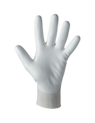 Guanto in filo continuo 100% nylon Palmo ricoperto in poliuretano Polso elasticizzato e dorso areato Consigliato per operazioni delicate e di precisione Colore: bianco EN 388 Resistenza Meccanica 4131