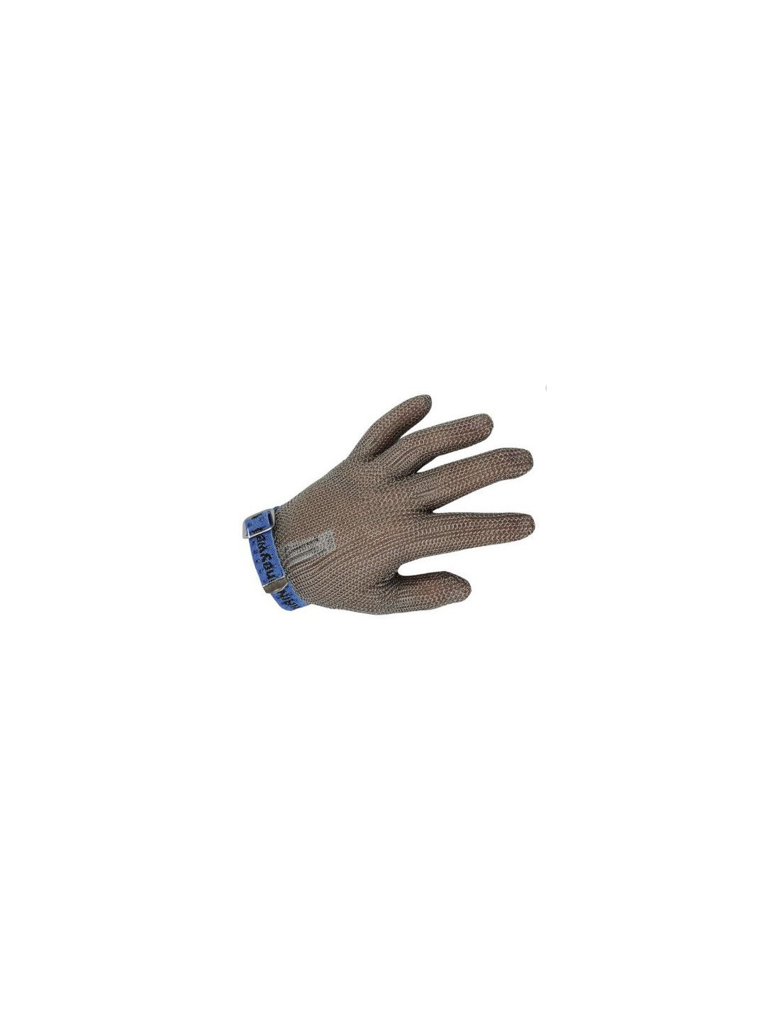 "Guanti antinfortunistici in maglia d'acciaio con cinturino fisso in materiale plastico o tessuto. Disponibile in varie versioni: - guanto 5 dita reversibile con cinturino in nylon; cinturino regolabile; fibbia con bottone a pressione - guanto 5 dita reversibile con manichetta lunga in cotta di maglia ed elementi di rinforzo; la manichetta disponibile in 3 lunghezze diverse (corta 7,5 cm, media 15 cm, lunga 21 cm) - guanto 5 dita per mano dx o sx, con manichetta in materiale plastico ultramid; lunghezza della manichetta 12 oppure 16 cm a seconda della taglia; o risvolto nella manichetta per protezione del bicipite"