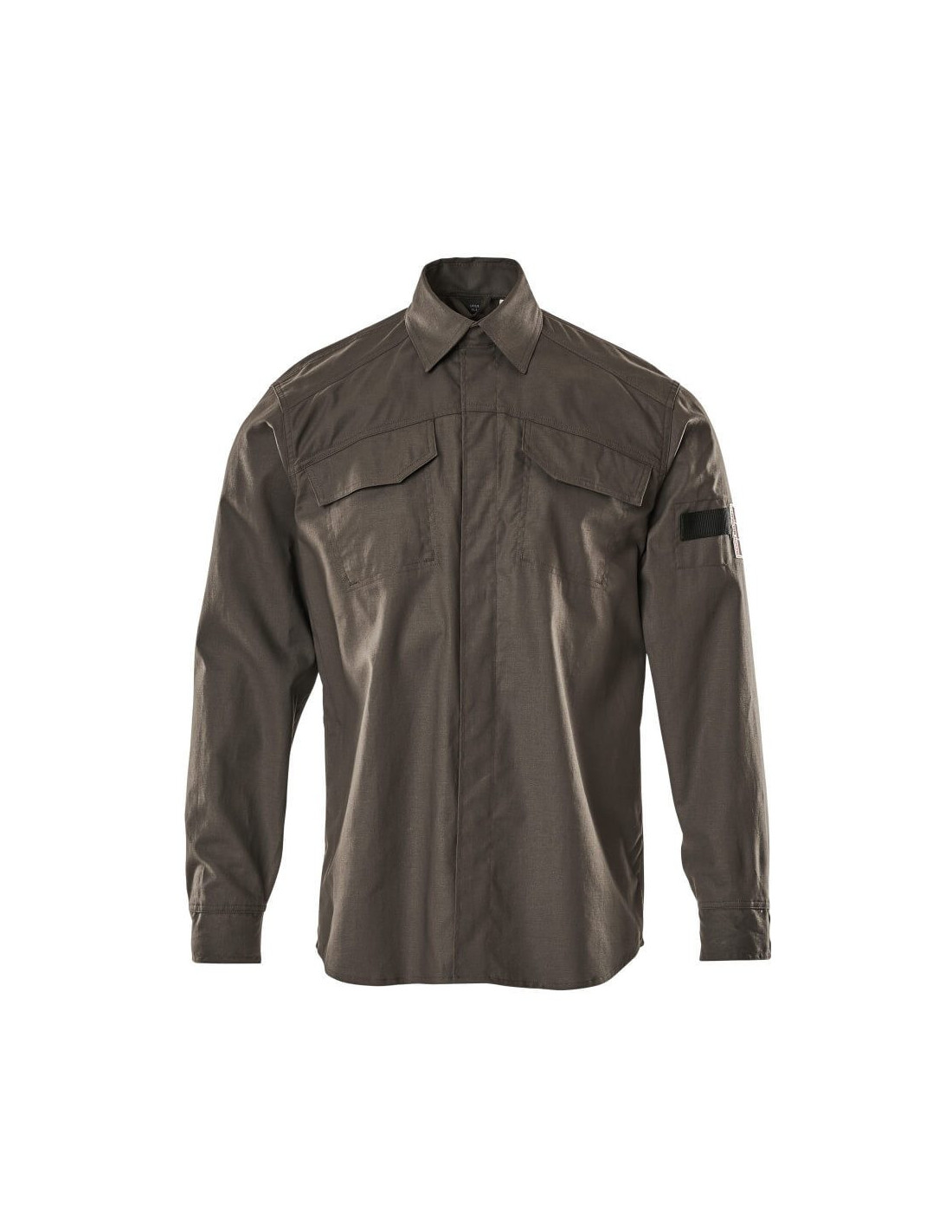 09004-142-18 Camicia TERNITZ multiprotezione - Modern fit MASCOT MULTISAFE 99% cotone/1% fibre di carbonio 185 g/m2 Outfit moderno. Antistatico e ignifugo. Maniche e lati rinforzati con doppia cucitura. Bottoniera con bottoni a scomparsa. Tasche sul petto con pattina e bottoni automatici a scomparsa. Porta-penne. Manica con fascia per fissaggio, ad esempio, di dispositivo di segnalazione gas. Manica con chiusura a soffietto. Polsino con elastico. Oeko-Tex Standard 100 EN 1149-3:2004 EN 1149-5:2008 EN ISO 11612 (A1, B1, C1) Taglie:39-40/41-42/43-44/45-46
