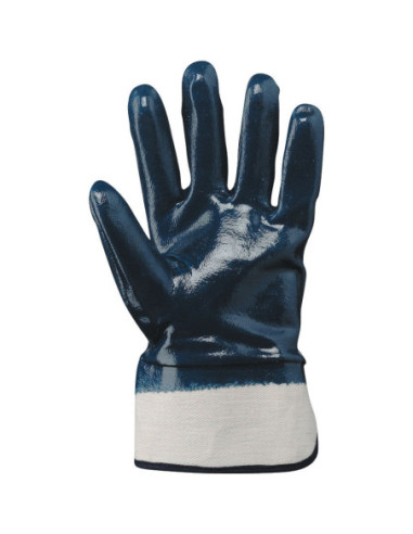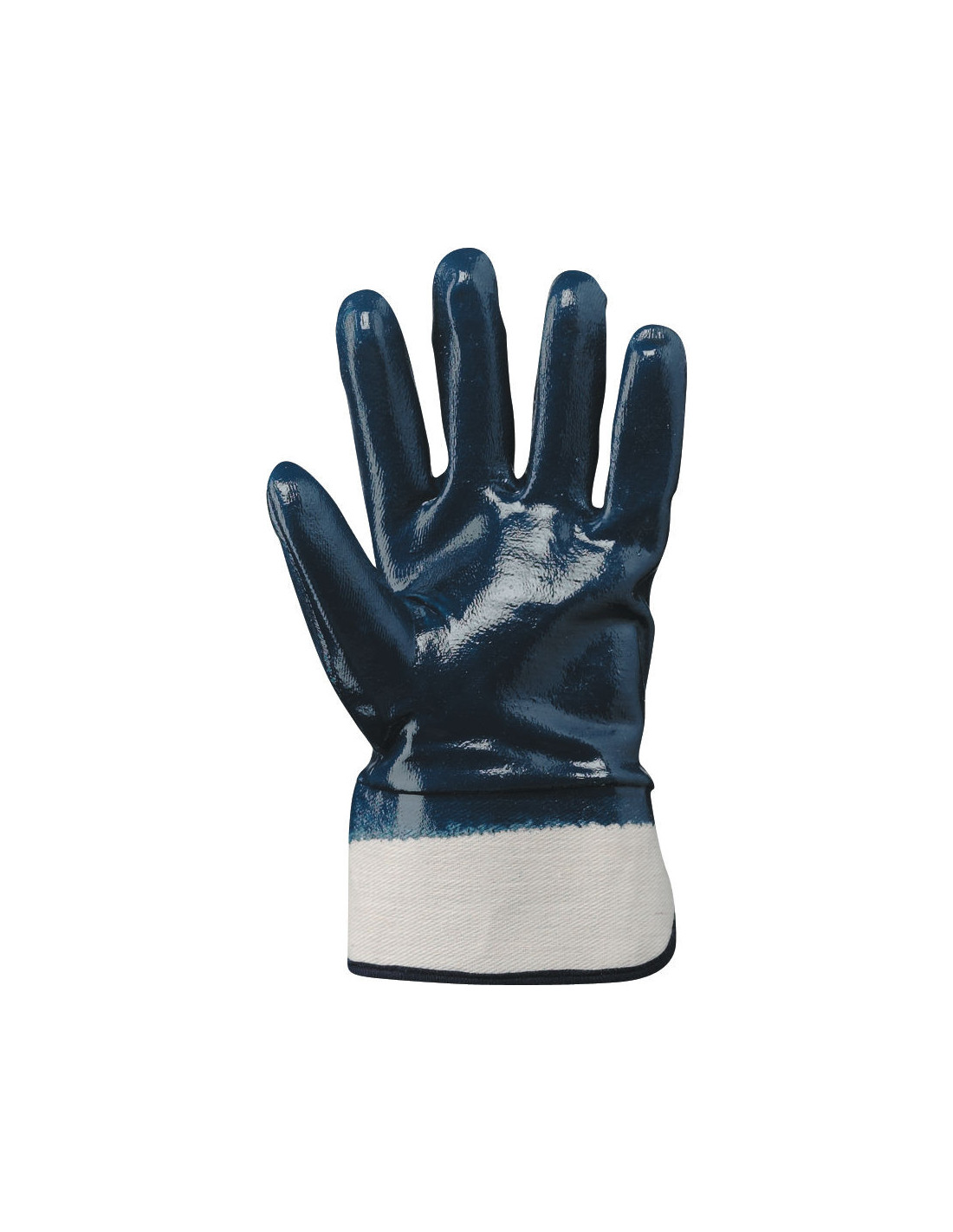 Guanto in tessuto jersey impregnato in NBR Dorso interamente ricoperto Manichetta di sicurezza in tela di cotone Colore: bianco/blu Modello economico RESISTENZA MECCANICA 3111