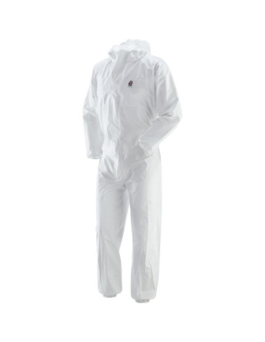 494060 PROKEM Tuta intera monouso con cappuccio in 70% polipropilene - 30% polietilene Tuta professionale a norme CE per utilizzo di prodotti chimici EN 14126 En1149 EN 1073-2. Tessuto-non tessuto in polipropilene ricoperto da un film microporoso di polietilene. Materiale ipoallergenico. Peso tessuto 60 g/m2. Cappuccio fisso con elastico. Elastico stringipolso, stringicaviglia, stringivita senza lattice Con trattamento antistatico. Chiusura con cerniera a 2 cursori ricoperta da patta con adesivo Taglie: M , L , XL , XXL Colore: bianco