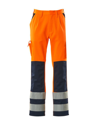 La finitura in Teflon¬ rende il prodotto resistente allo sporco e garantisce alta visibilita' quando si lavora nel traffico Nuovo design della tasca per il metro adatta sia per metri corti sia per quelli lunghi Tasche ginocchia regolabili con risvolto in modo che non entri lo sporco Materiali: 65% poliestere/35% cotone 290 g/m_ Conforme alla norma EN 471 - classe 2/2.