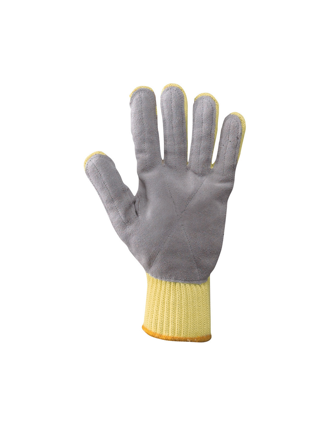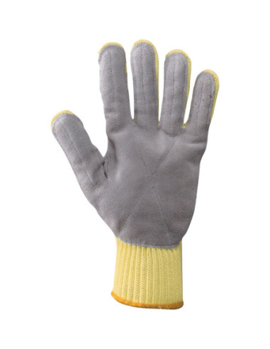 Palmo supportato in crosta bovina Polso elasticizzato Offre un'eccellente protezione dai rischi meccanici (es. lavorazione lamiera) Resistente al calore da contatto (solo per brevi e rapidi contatti) Lunghezza: cm 25,5 ca. (tg. 9) Colore: giallo EN388 4344 EN407 X1XXXXX