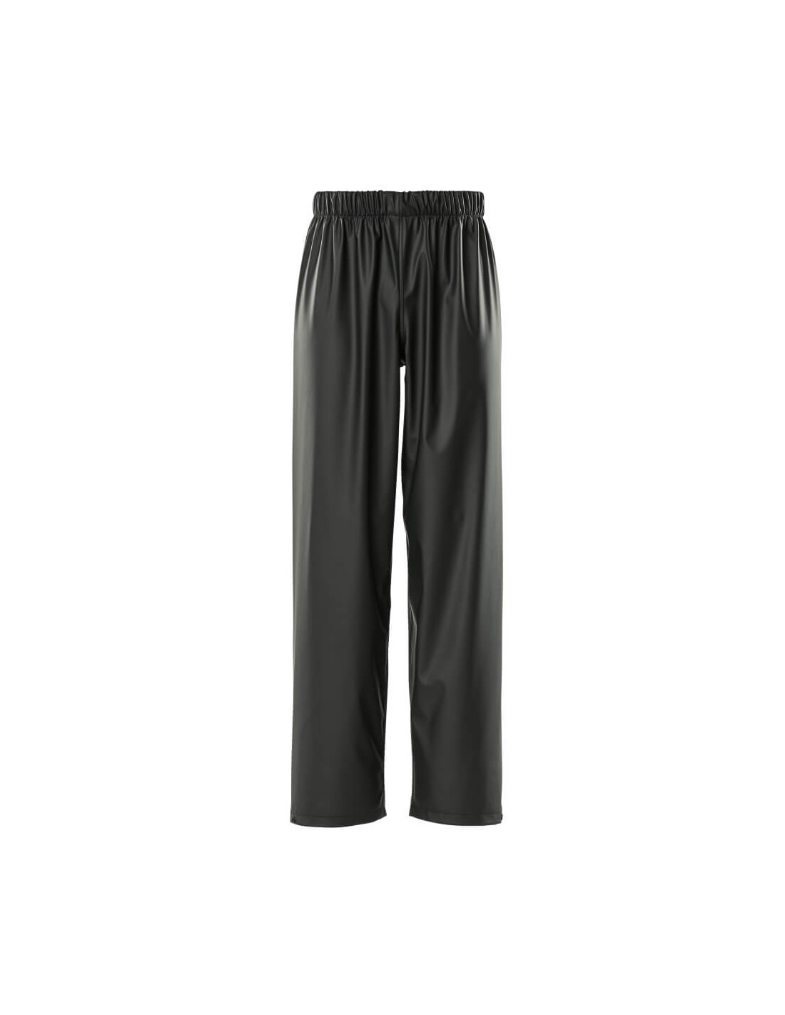 20990-873 Pantaloni antipioggia 60% poliestere/40% poliuretanica 200 g/m2 Tessuto idrorepellente con rivestimento PU. Pressione acquea 3.000 mmH2O secondo lo standard ISO 811. Impermeabile e antivento. Cuciture saldate. Elastico in vita. Bottone automatico per regolazione sotto. Taglie: S-4XL Colore: Nero