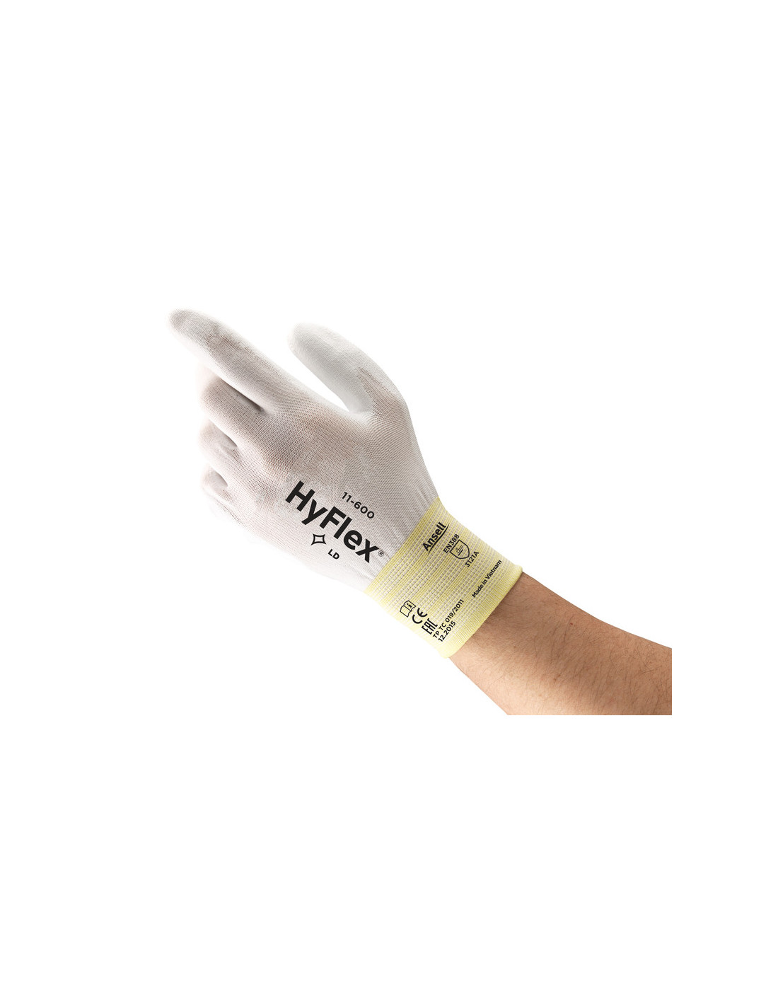 Guanti da lavoro a filo continuo rivestiti in poliuretano bianco ANSELL mod. 11-600 HYFLEX.